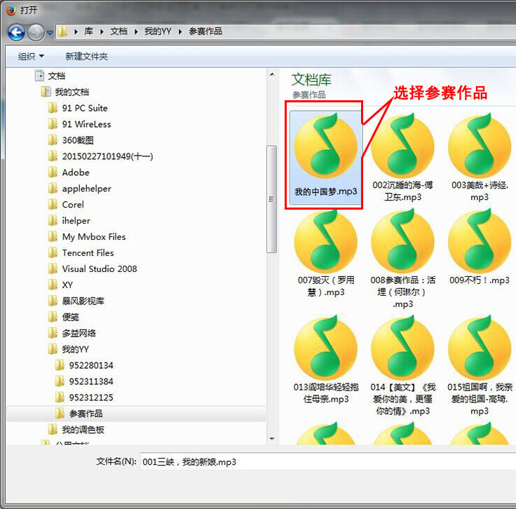 如果录制的文件不是mp3格式的音频文件,请发给全国网络赛区工作人员(QQ:523790078 、 1251388278 )!帮您转成mp3格式的文件。